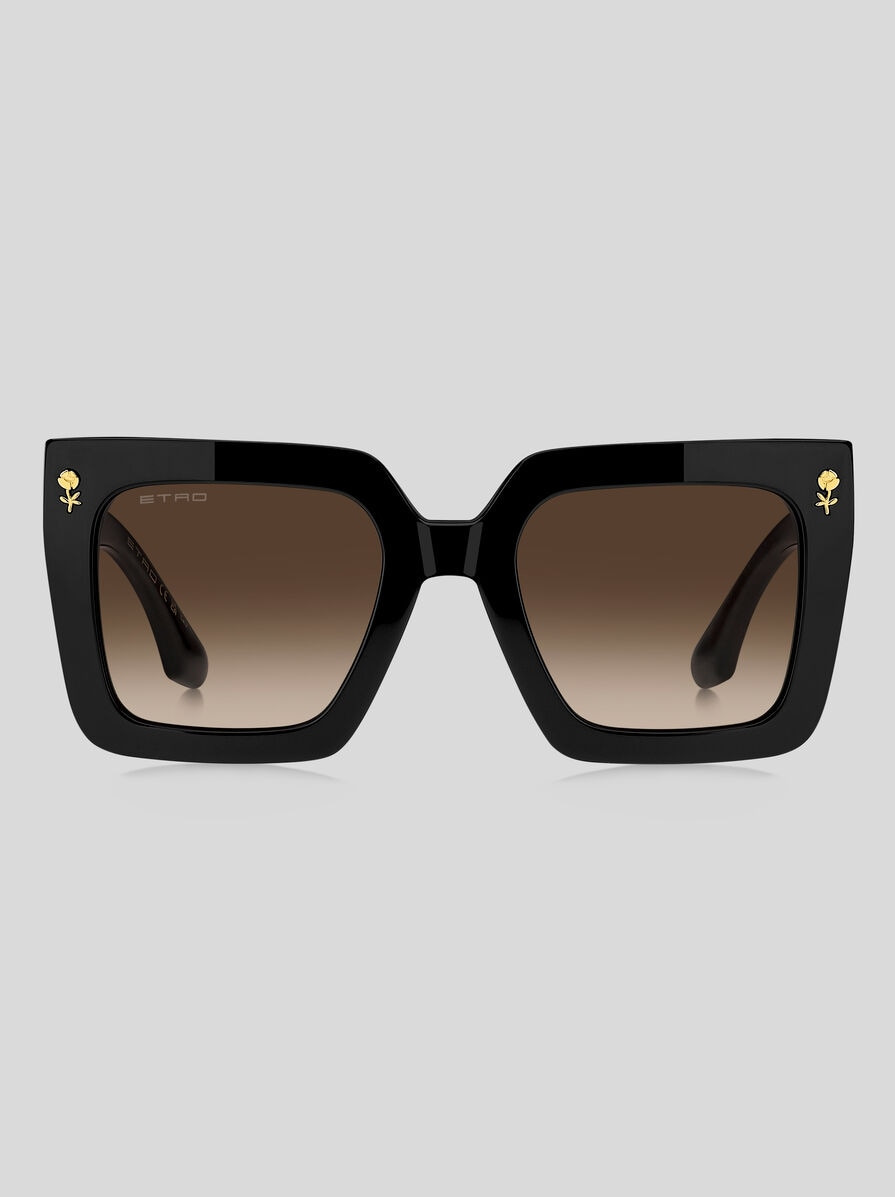 Evolving ETRO's "Colour Stripes" story for the new season, these sunglasses are designed to be seen. The bold acetate frame is bevelled around the front for lightness and paired with geometric temples in a sheer ombre palette that allows the graphic metal wirecore to peek through. Notice the floral details inspired by intricate embroidery techniques, the famous ETRO logo and the signature temple tips. The colour palette blends classic tones with intriguing transparencies to striking effect. PRODUCT DETAILS • Frame: acetate • Lenses with UVA and UVB protection • Fitting: international • Lens: 44,9mm, bridge: 22mm, temple: 145mm • Made In China