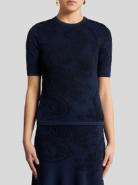 T-shirt in cotton-blend fabric with raised lycra® Paisley jacquard motif. • Slim fit • Crew neck • Short sleeves • Made in Italy • The model is 5’10” (178 cm) tall and wears a size 40 (IT) PRODUCT DETAILS • 62% viscose, 31% cotton, 7% polyester