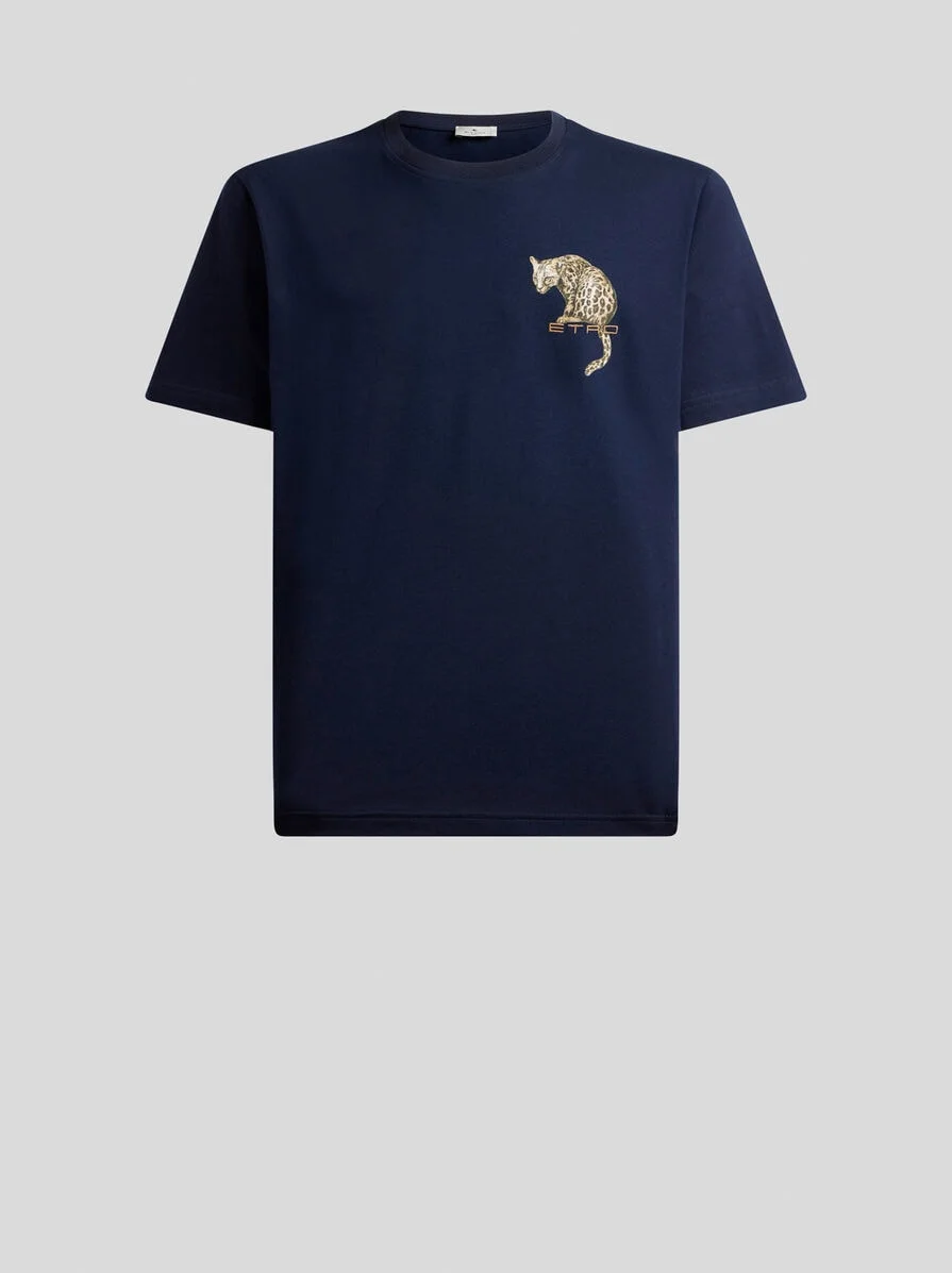 COTTON T-SHIRT WITH LEOPARD PRINT AND ETRO EMBROIDERY