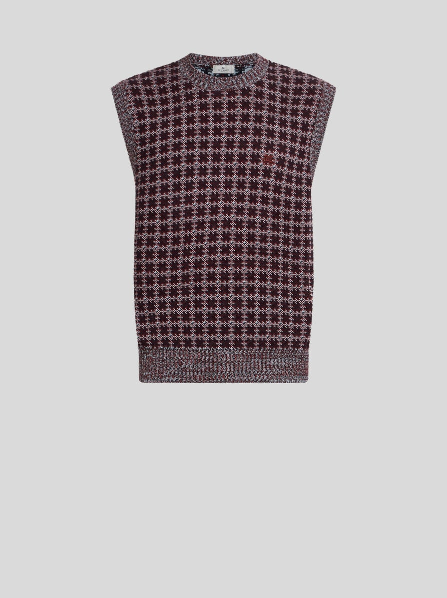 Slim-fit waistcoat in pure cotton fabric with jacquard motif. This model features a small, decorative embroidered Pegaso symbol on the chest. • Slim fit • Crew neck • Ribbed edging • Made in Italy • The model is 6' 1½" (187 cm) tall and wears a size M PRODUCT DETAILS • 100% cotton