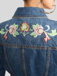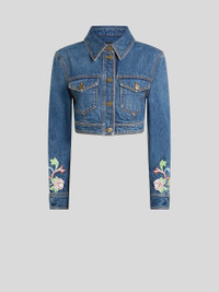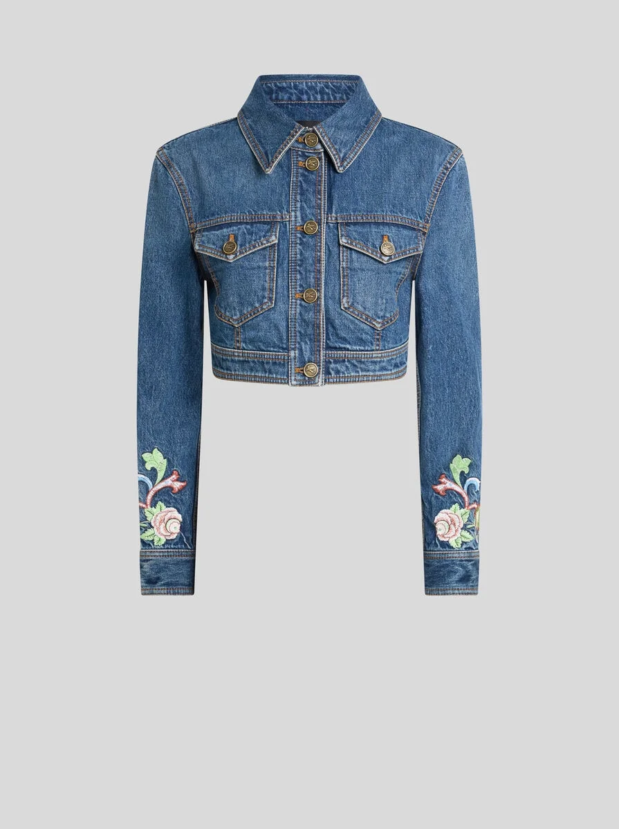 CROPPED DENIM JACKET WITH FLORAL EMBROIDERY