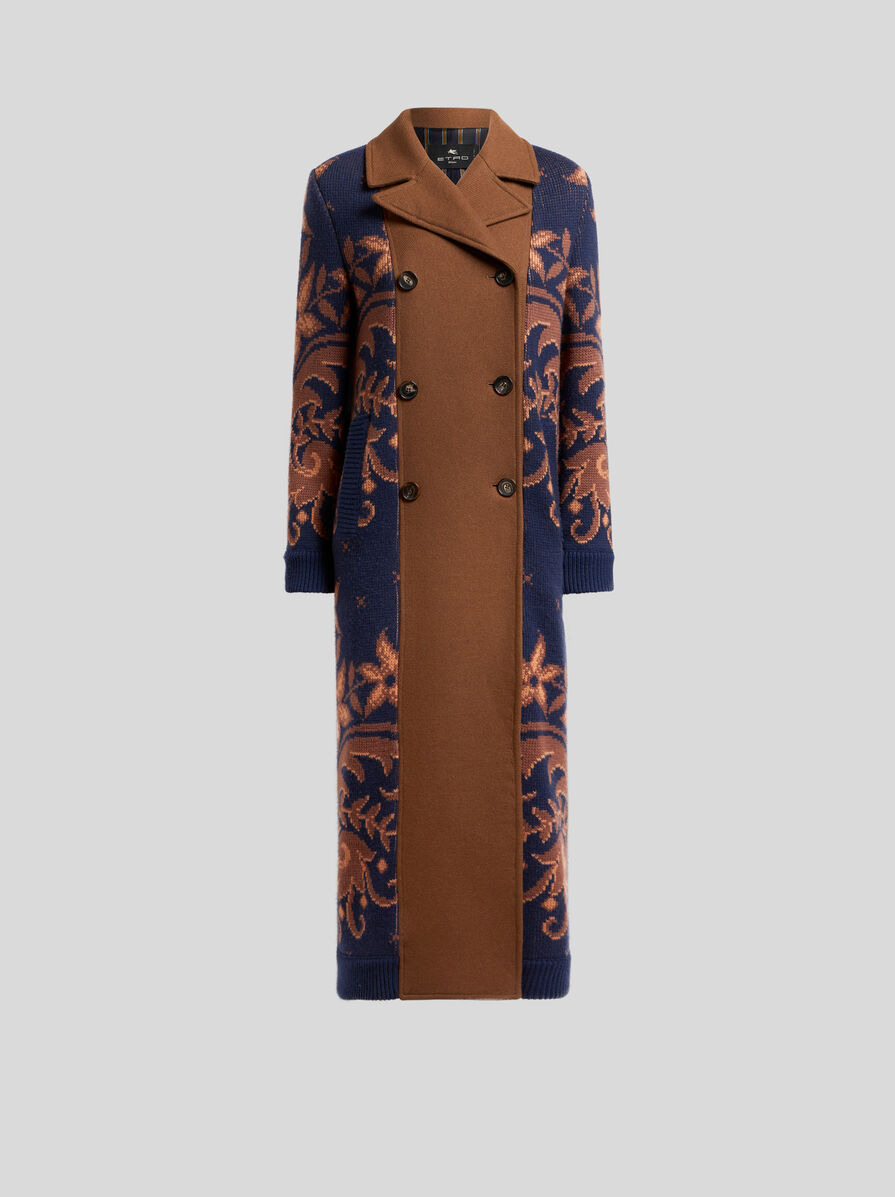 DOUBLE-BREASTED COAT WITH KNIT INSERTS