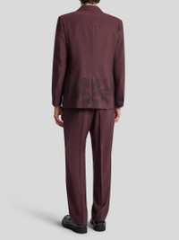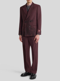 Double-breasted pure wool jacket with placed floral motif. This model is finished with a contrasting undercollar and a tailor's label featuring the Pegaso symbol and ETRO logo on the sleeve. • Regular fit • Peak lapels • Double-breasted closure with buttons • Welt pockets at the front • Made in Italy • The model is 6' 1" (186 cm) tall and wears a size 48 PRODUCT DETAILS • 100% wool • Lining: 52% viscose, 48% acetate