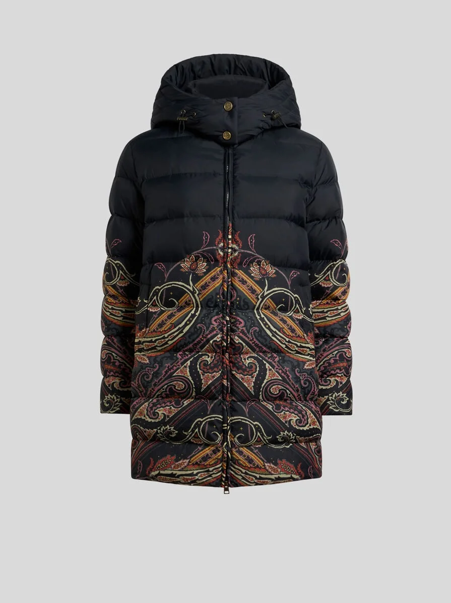 DOWN JACKET WITH PLACED PAISLEY AND GEOMETRIC PRINT