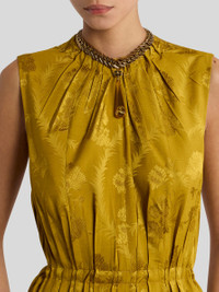 Vintage short necklace with chain and droplet-shaped pendant topped with a sun-face charm and containing a small bee inspired by the iconic Paisley pattern. The accessory was presented at the Autumn-Winter 25 Runway Show. • Length: 15.7 inches (40 cm) • Pendant height: 3.3 inches (8.5 cm) • T-bar closure • Made in Italy PRODUCT DETAILS • Body: 100% brass • Chain: 100% brass • Pendant: 100% resin