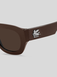 A fashion statement in all the right ways – ETRO's "Etroscreen" eyewear edit gives timeless shapes a contemporary edge. These sunglasses evolve the collection's aesthetic principles with their refreshed proportions for an even bolder look. The toned-down shape of the temples and thoughtful details ensure everyday wearability without sacrificing the cool factor – courtesy of ETRO's iconic end tips, the metallic Pegaso detail and the logo lettering on the tinted lenses. PRODUCT DETAILS • Frame: polyamide inj • Lenses with UVA and UVB protection • Fitting: international • Lens: 41,3mm, bridge: 25mm, temple: 145mm • Made In Italy