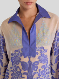 Wrap made from cotton- and silk-blend jacquard fil coupe fabric. This item features a placed floral motif and is complete with contrasting plain-coloured edges. • Regular fit • Pointed collar • Kimono sleeves • Made in Italy • The model is 5' 9½" (177 cm) tall and wears a size S PRODUCT DETAILS • 52% cotton, 30% silk, 18% polyester • Hems: 42% polyester, 30% silk, 28% cotton