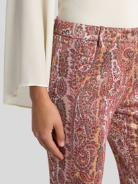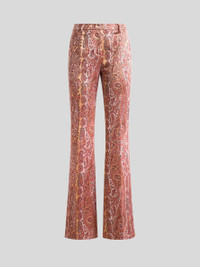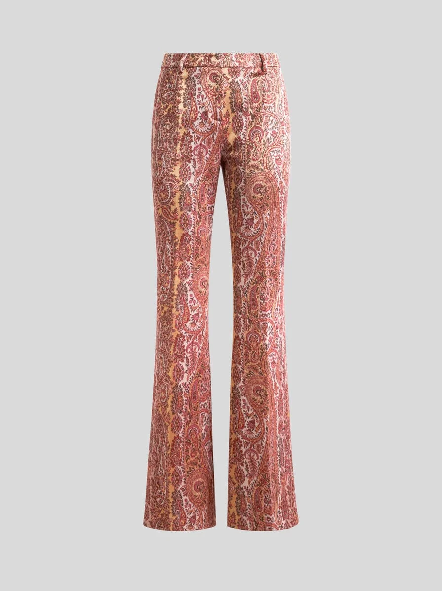 Flared-leg trousers in slightly stretchy cotton-blend jacquard jersey. This garment stands out for its all-over Paisley motif with foliage-inspired elements. • Fit-and-flare fit • Regular-rise waist • Rear welt pockets • Concealed hook and zip closure • Made in Italy • The model is 5' 9½" (176 cm) tall and wears a size 40 PRODUCT DETAILS • 43% cotton, 37% viscose, 16% polyester, 3% polyamide, 1% elastane