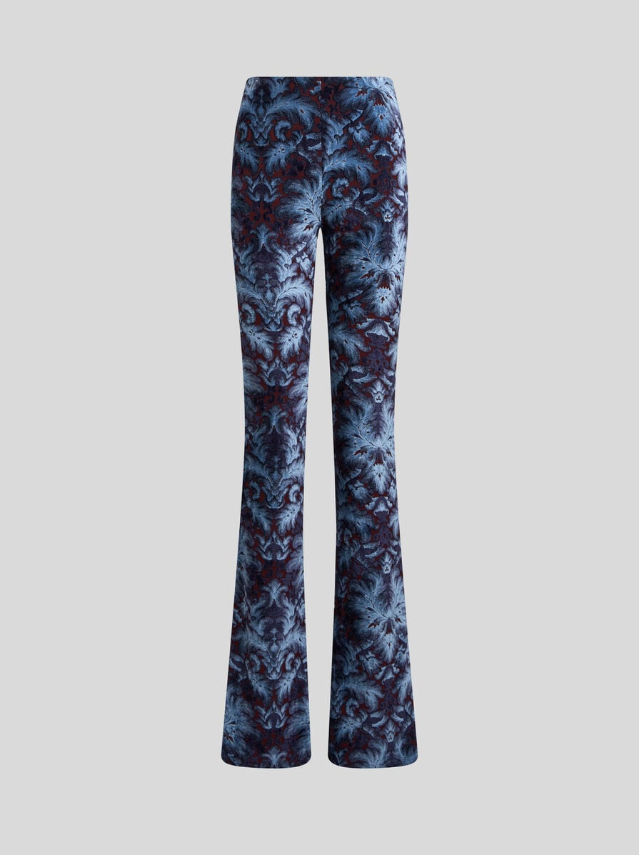 Trousers with snug fit at the sides and flared hem. This model is made from stretch jersey with a chenille jacquard motif inspired by the natural world. • Slim fit • High waist • Made in Italy • The model is 5' 9½" (177 cm) tall and wears a size 40 PRODUCT DETAILS • 96% viscose, 4% elastane