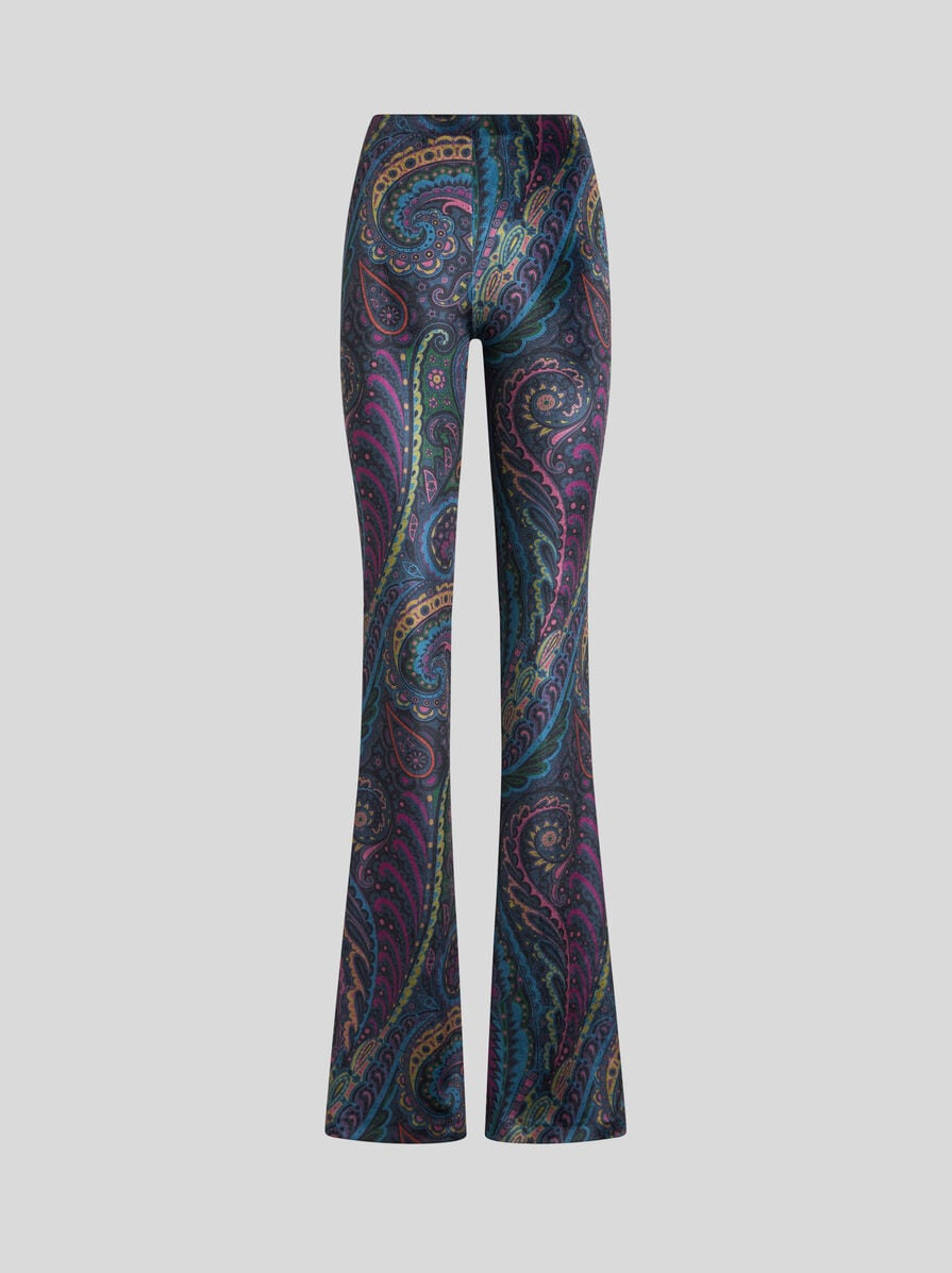 Trousers with snug fit at the sides and flared hem. This model is made from stretch chenille fabric embellished with an all-over, multicoloured Paisley print. • Slim fit • High waist • Made in Italy • The model is 5' 9½" (177 cm) tall and wears a size 40 PRODUCT DETAILS • 93% polyester, 7% elastane