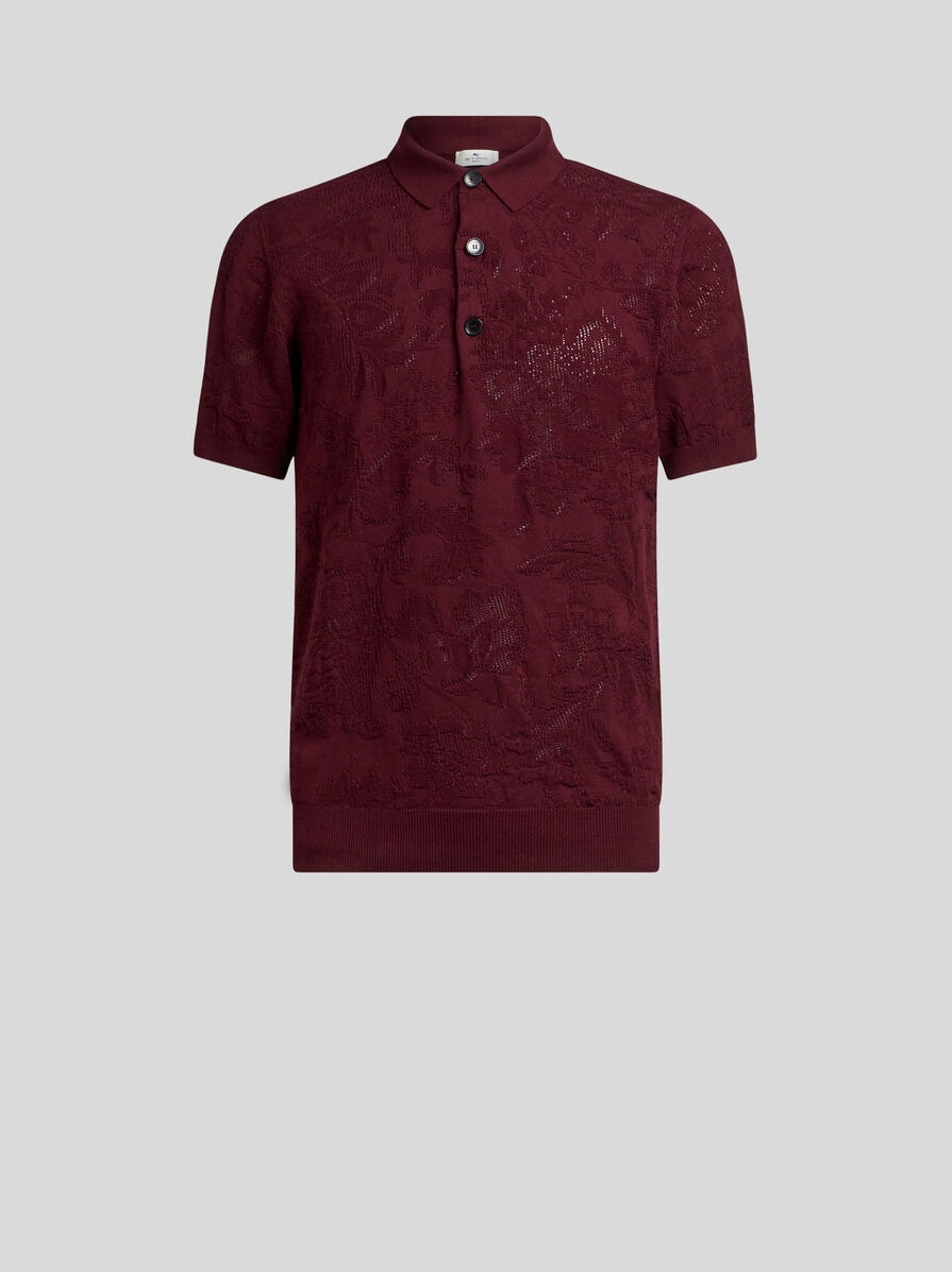 Pure cotton polo shirt with perforated floral Paisley motif. The ribbing on the collar, sleeve ends and hem complete the garment. • Regular fit • Short sleeves • Made in Italy • The model is 6' 1½" (187 cm) tall and wears a size M PRODUCT DETAILS • 100% cotton