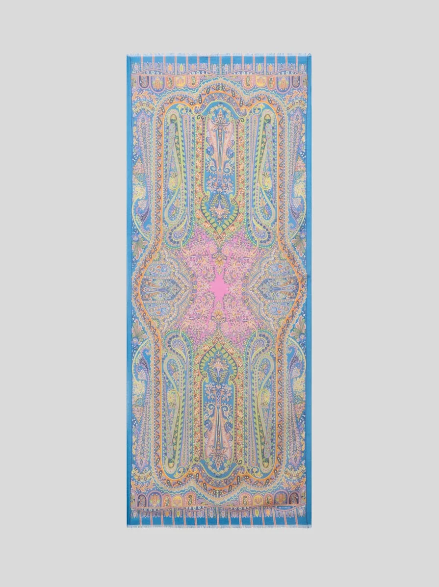 Soft cashmere-blend scarf with distinctive, elaborate floral Paisley motif. Completing the accessory are the iconic ETRO logo and slightly frayed short sides. • Size: 27.6 x 66.9 inches (70 x 170 cm) • Made in Italy PRODUCT DETAILS • 90% modal, 10% cashmere