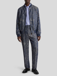 JACQUARD DENIM BOMBER JACKET WITH FLORAL PAISLEY MOTIF