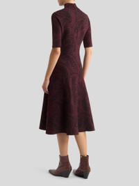 Short-sleeved midi dress with flared shape from the hips down that forms delicate pleats along the skirt. Made from knit fabric, this turtleneck piece is embellished with a two-tone jacquard motif depicting the iconic Paisley, enhanced by foliage-inspired elements. • Fit-and-flare fit • Turtleneck • Short sleeves • Made in Italy • The model is 5' 9½" (176 cm) tall and wears a size 40 PRODUCT DETAILS • 83% viscose, 17% polyester