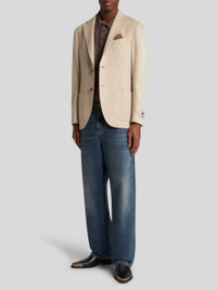 Knit polo-shirt made from a silk and cashmere-blend yarn, featuring an all-over paisley-stamped print. This model is embellished with a tone-on-tone embroidered Pegaso symbol and ETRO logo on the chest. • Regular fit • Fine-rib 1 x 1 trims • Made in Italy • The model is 6’2” (188 cm) tall and wears a size M PRODUCT DETAILS • 55% silk, 45% cashmere