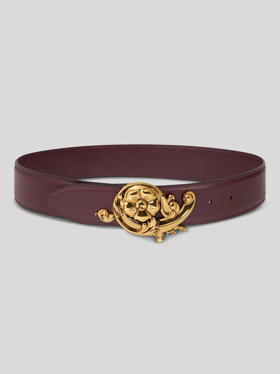Belt in soft, plain-coloured leather. This item features a buckle with floral details inspired by the iconic Paisley motif. • Height: 1.6 inches (4 cm) • Made in Italy PRODUCT DETAILS • Calfskin • Lining: calfskin