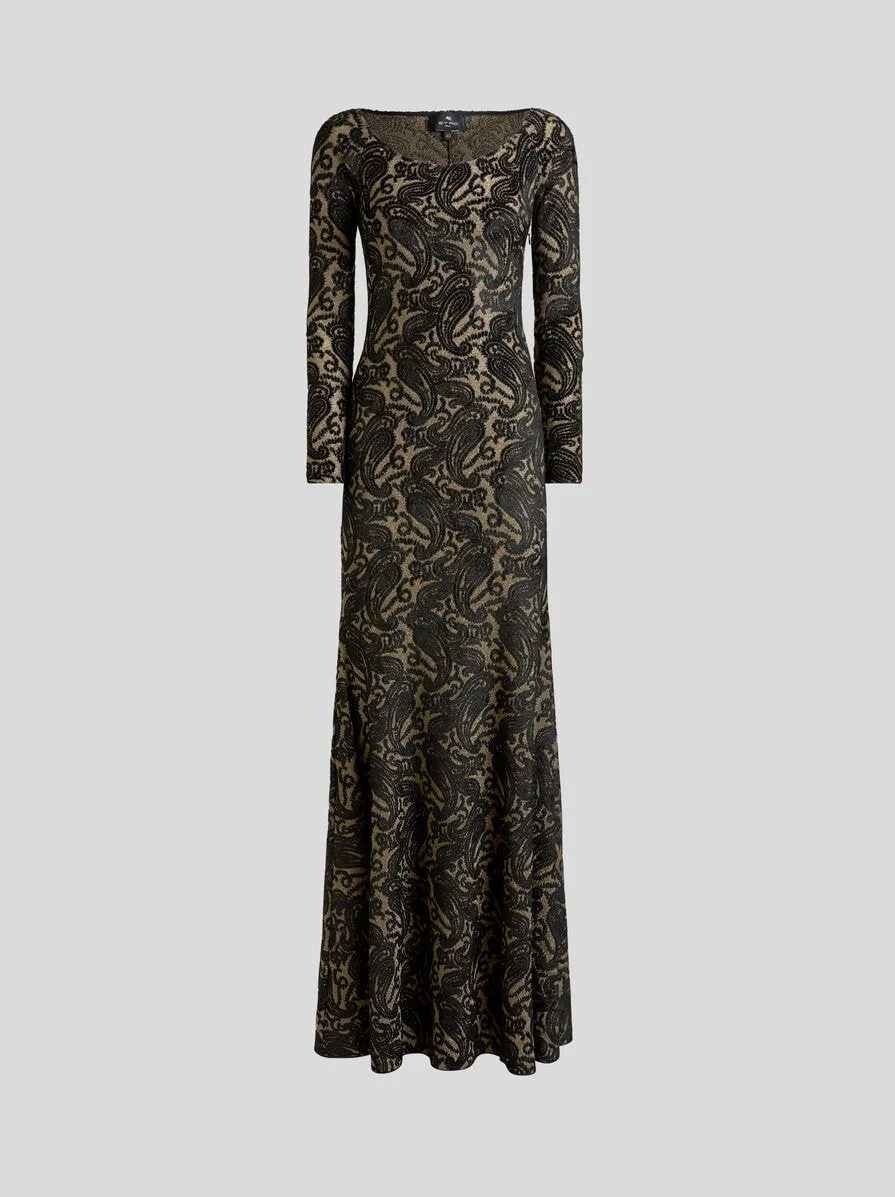 LONG CHENILLE JACQUARD DRESS WITH LUREX AND PAISLEY MOTIF