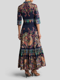 LONG COTTON DRESS WITH PLACED FLORAL PAISLEY PRINT