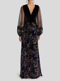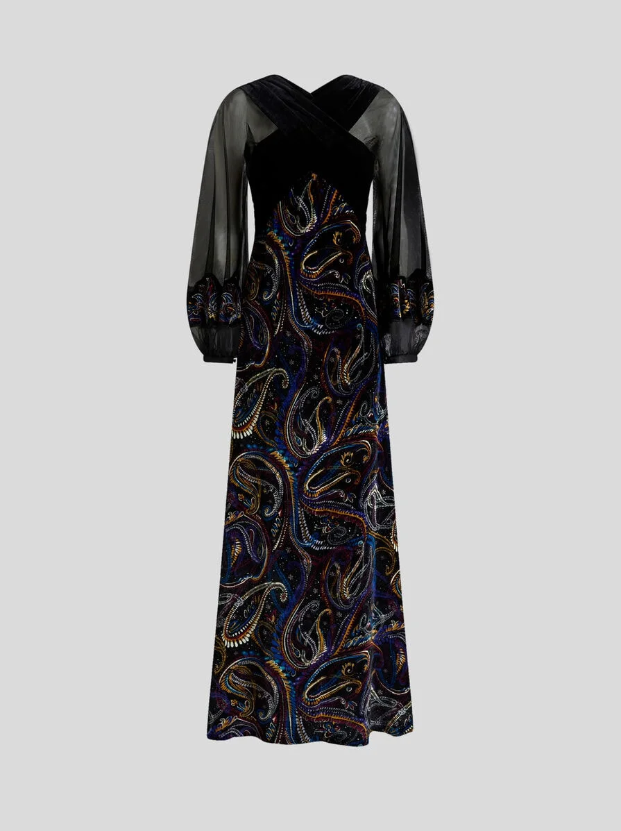 LONG VELVET DRESS WITH PAISLEY FOLIAGE MOTIF