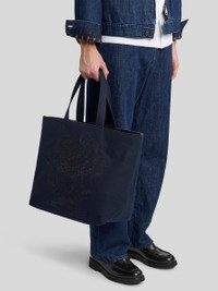 Maxi cotton tote bag with leather trims. The accessory features an embroidered octopus and ETRO logo on the front. • Size (Width, Height, Depth): 13.8 x 14.6 x 7.1 inches (35 x 37 x 18 cm) • Zipped internal slip pocket • Two handles • Made in Italy PRODUCT DETAILS • 100% cotton • Detailing: calfskin • Embroidery: 100% polyester thread • Lining: 100% cotton