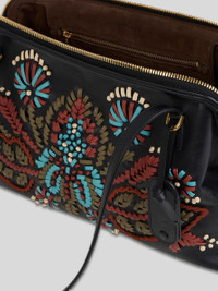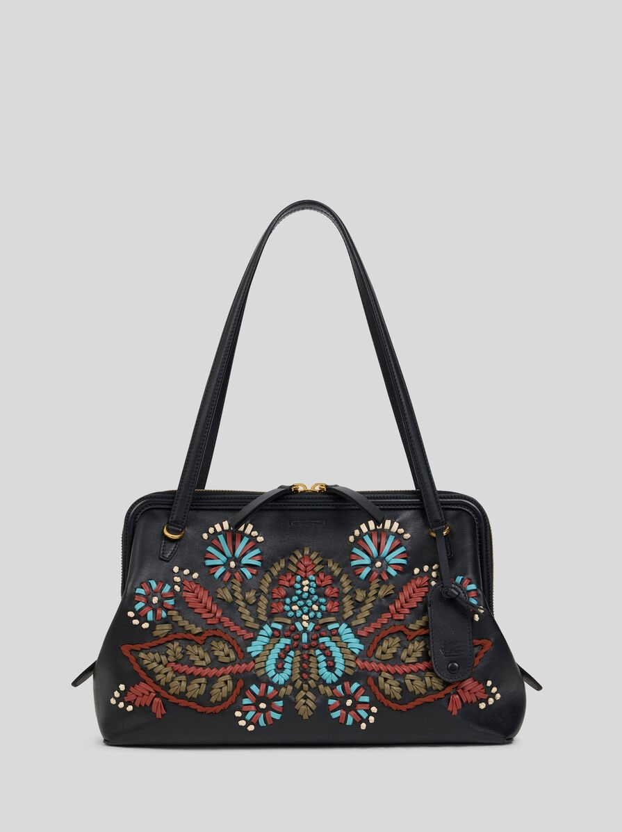 MEDIUM LEATHER DOC SHOULDER BAG WITH EMBROIDERY