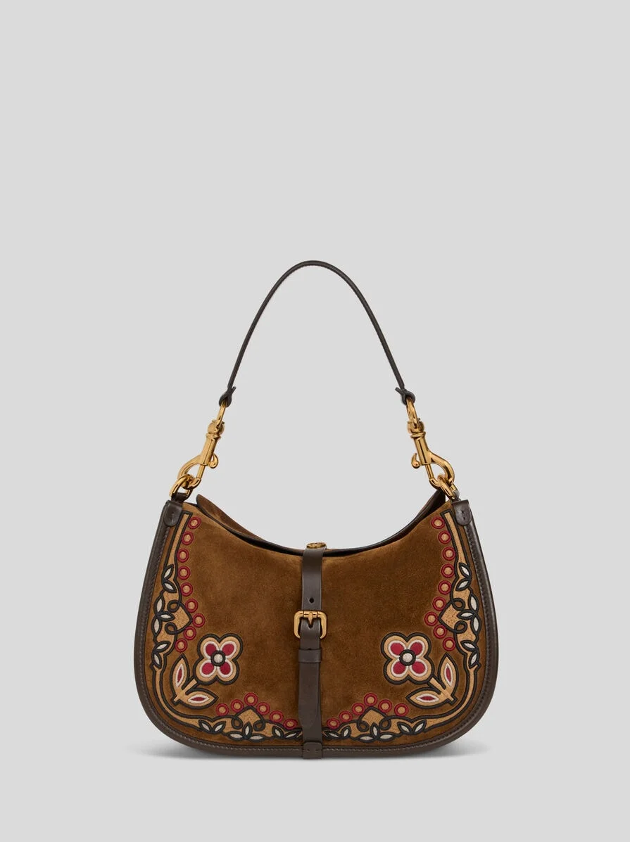 MEDIUM SUEDE PONY BAG WITH EMBROIDERY