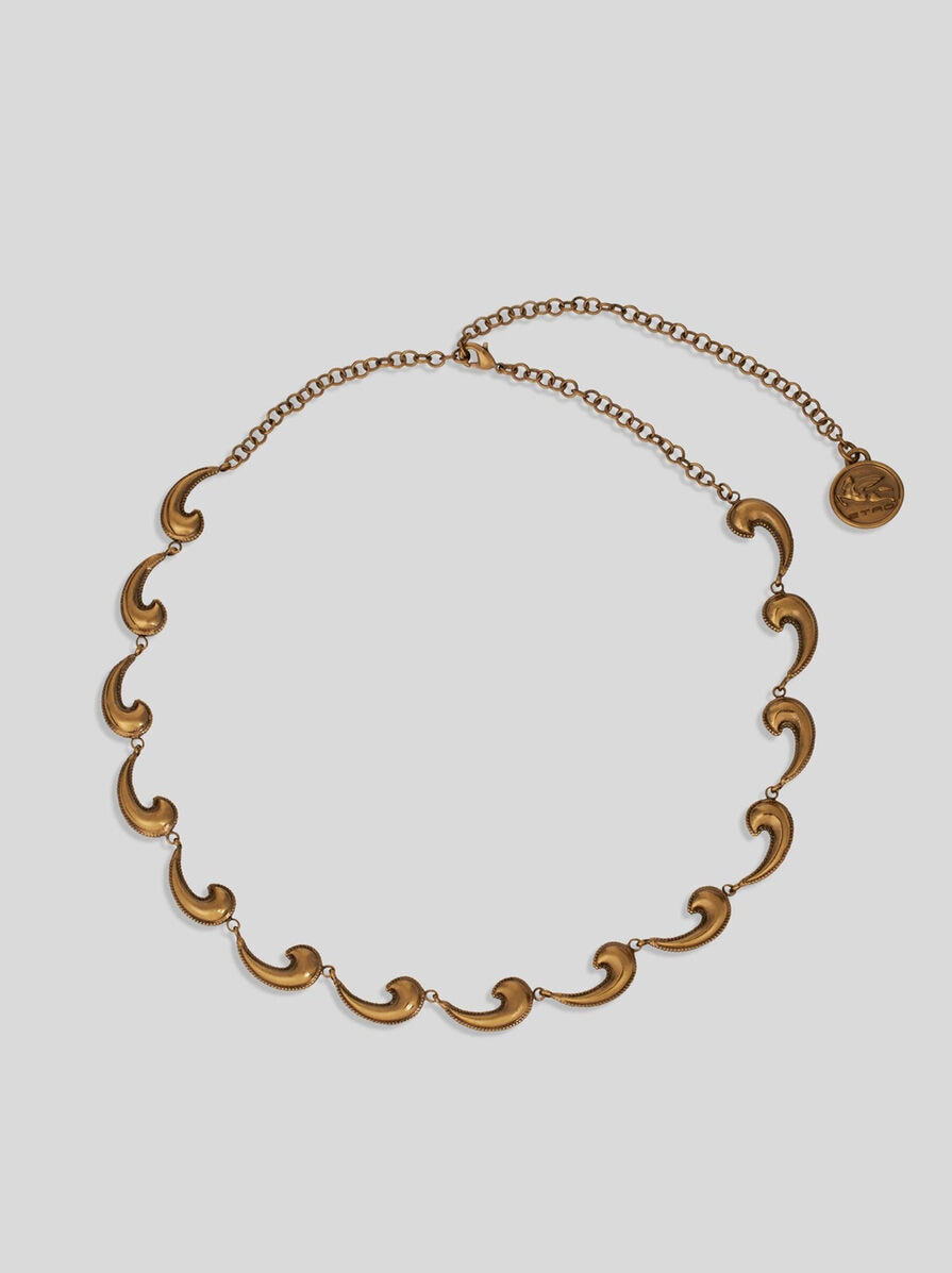 Vintage-style short necklace with micro Paisley detail. This accessory stands out for its charm bearing the ETRO logo and Pegaso symbol engraved using the same technique used to mint coins. • Clasp closure • Made in Italy PRODUCT DETAILS • 100% brass