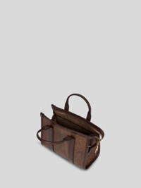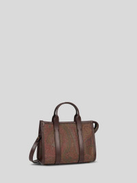 Mini top-handle bag in iconic Paisley jacquard fabric, with leather details. Thanks to the detachable strap, this model can be worn crossbody or carried by hand or on the shoulder. • Dimensions (Width, Height, Depth): 7.9 x 5.9 x 3.5 inches (20 x 15 x 9 cm) • Zip closure • Adjustable and detachable shoulder strap • Internal pocket • Golden-finish metal details • Metal feet • Made in Italy PRODUCT DETAILS • Exterior: Paisley jacquard cotton fabric coated with matt texture and lined with canvas • Coating: 100% PVC • Trims: calfskin • Lining: cowhide