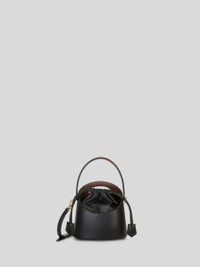 Mini leather Saturno bucket bag from the Women's Fall-Winter 2023 Fashion Show collection. The bag stands out for its oval handle and the inner body made with a drawstring. The Saturno bag is perfect to be worn either with the handle or the shoulder strap. PRODUCT DETAILS • 18 x 18.5 x 12 cm / 7. 08 x 7,28 x 4,72 inches • Exterior: Paisley fabric: Front: 76% cotton, 24% polyester; Rear: 100% cotton • Coating_PVC • Details: 100% calfskin • Interior: 100% lambskin • Drawstring fastening • Inside patch pocket • Short handle length 37 cm / 14,56 inches • Adjustable and detachable shoulder strap length (drop) 52 cm / 20.47 inches • Metal feet • Made in Italy