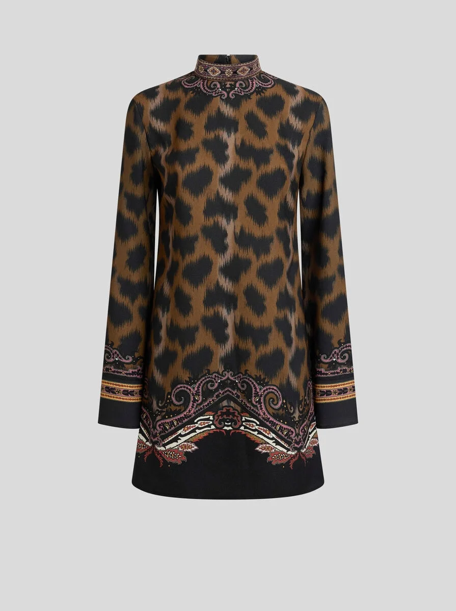 MINI TUNIC DRESS IN ENVERS SATIN WITH ANIMAL MOTIF