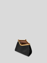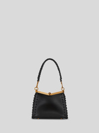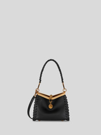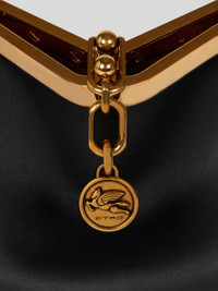 Iconic mini Vela bag in leather with thread work at the sides. This model can be carried by hand or on the shoulder thanks to the detachable and interchangeable strap and handle. This model stands out for its distinctive metal fastening and the medallion bearing the ETRO logo and Pegaso symbol engraved using the same technique used to mint coins. PRODUCT DETAILS • 8.26 x 6.29 x 3.54 inches (21 x 16 x 9 cm) • Exterior: 100% calfskin • Interior: 100% calfskin Short shoulder strap length 10.62 inches (27 cm) - drop • Detachable adjustable shoulder strap: 21,65 inches (55 cm long) - drop • Metal feet • Light golden-finish metal accessories • Made in Italy