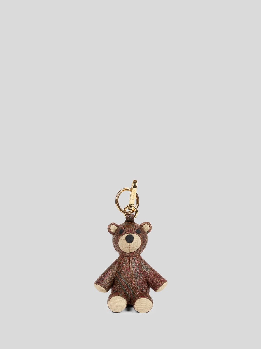 Teddy bear-shaped charm in iconic Paisley jacquard fabric. • Dimensions (Width, Height): 3.9 x 3.5 inches (10 x 9 cm) • Made in Italy PRODUCT DETAILS • Exterior: Paisley jacquard cotton fabric coated with matt texture and lined with canvas • Trims: 100% cotton • Details: 100% polyester thread