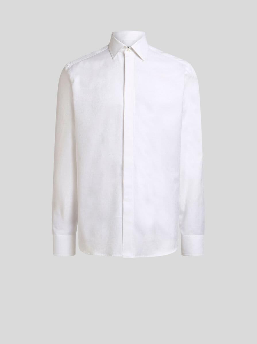 Pure cotton jacquard shirt with tone-on-tone all-over Paisley motif. • Roma regular fit • Pointed collar • Concealed button closure • Buttoned working cuffs • Made in Italy • The model is 6' 1½" (187 cm) tall and wears a size 39 (IT) PRODUCT DETAILS • 100% cotton