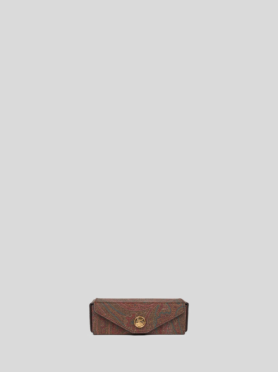 Domino game featuring the iconic Paisley jacquard fabric and complete with an elegant flap and button-fastened box embellished with an embossed Pegaso logo and engraved Etro lettering. • Dimensions (Width, Height, Depth): 5.5 x 2 x 2.6 inches (14 x 5 x 6,5 cm) • Domino tiles and case • Fastened with flap and button • Golden button with Pegaso logo • Made in Italy PRODUCT DETAILS • Exterior: Paisley jacquard cotton fabric coated with matt texture and lined with canvas • Coating: 100% PVC • Trims: lambskin, polyester, cotton • Lining: lambskin with PVC coating