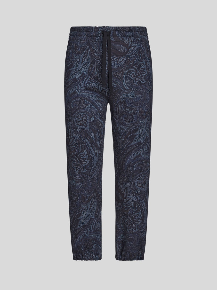 Cotton fleece jogging trousers with all-over decorative multicoloured Paisley print. This model is embellished with a tone-on-tone embroidered Pegaso symbol and ETRO logo on the back. • Regular fit • Side slip pockets • Rear pocket • Waist drawstring • Elasticated hem • The model is 73.6" (187 cm) tall and wears a size M (IT) • Made in Italy PRODUCT DETAILS • 100% cotton