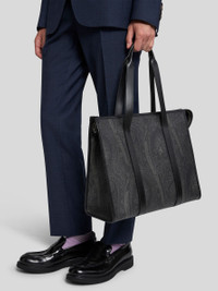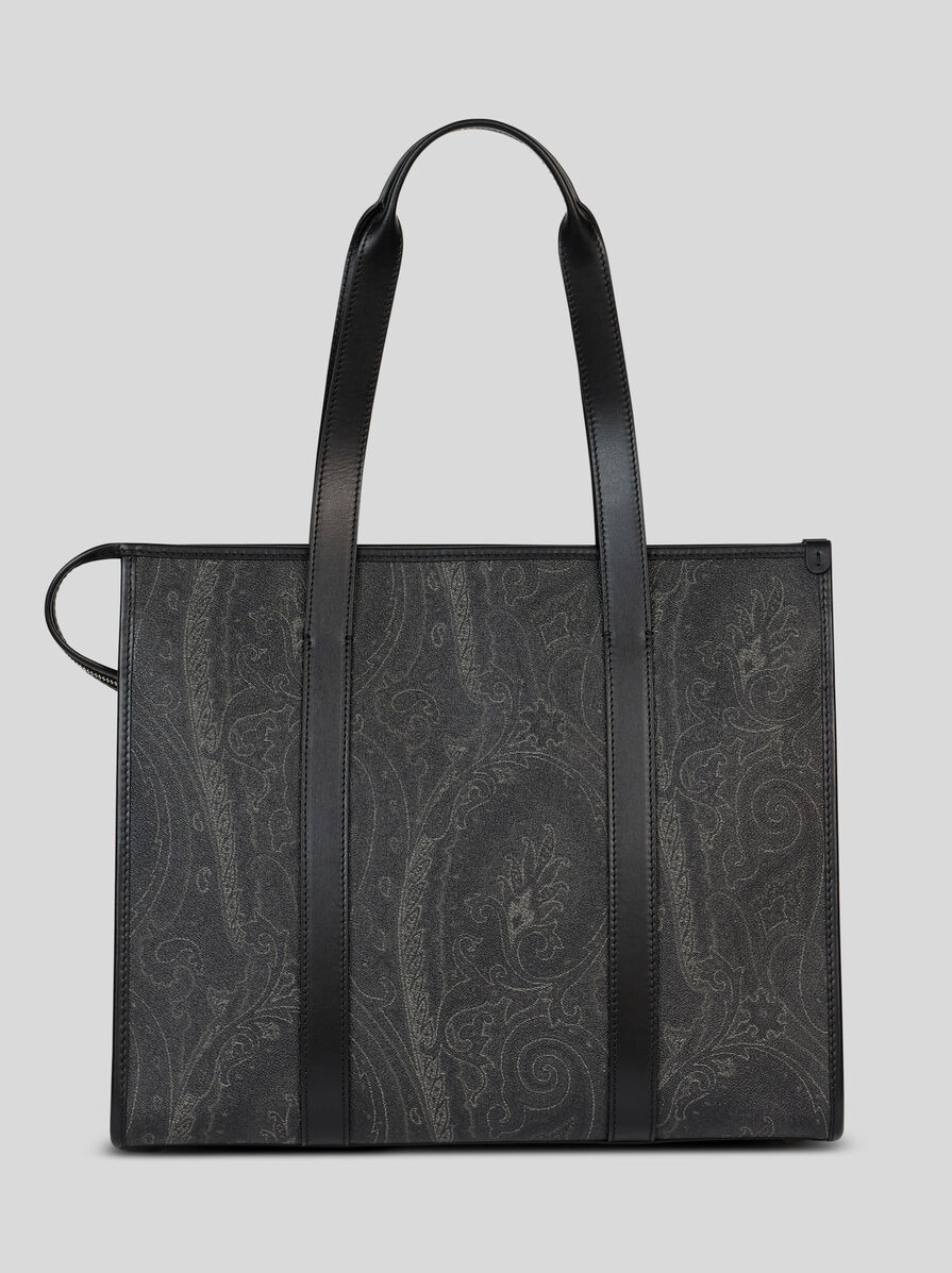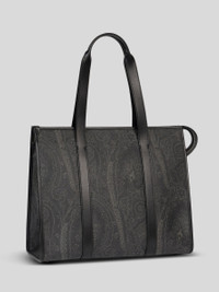 Tote bag in iconic Paisley jacquard fabric with leather details. This accessory has a practical zip closure and two handles, and is perfect to carry on the shoulder or by hand. • Dimensions (Width, Height, Depth): 15 x 12.8 x 6.1 inches (38 x 32.5 x 15.5 cm) • Zip closure • Two handles • Metal feet • Made in Italy PRODUCT DETAILS • Exterior: Paisley jacquard cotton fabric coated with matt texture and lined with canvas • Coating: 100% PVC • Trims: calfskin • Lining: cowhide