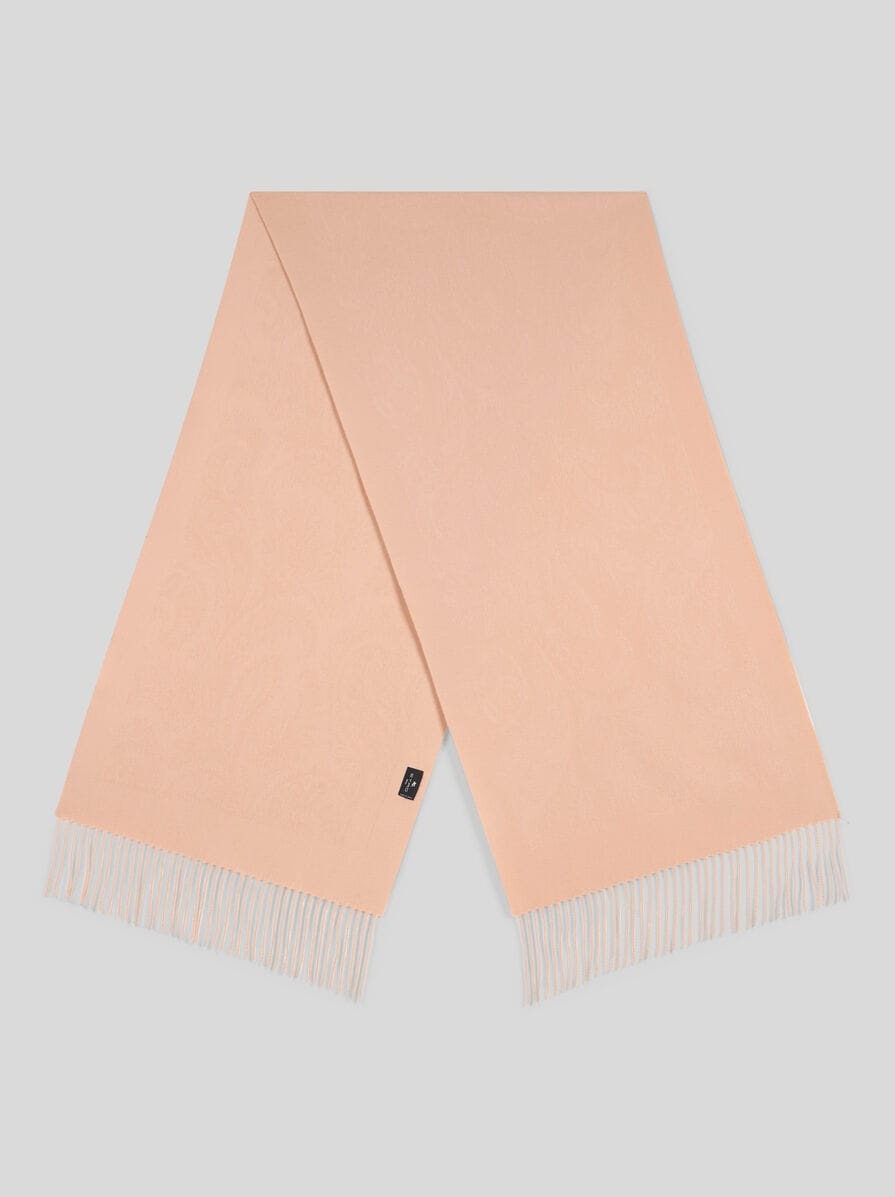 Pure wool jacquard scarf with all-over Paisley motif. Complete with fringing on the short sides and a label with the Pegaso logo and ETRO lettering. • Size: 20.5 x 70.9 inches (52 x 180 cm) • Made in Italy PRODUCT DETAILS • 100% wool