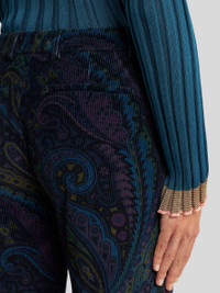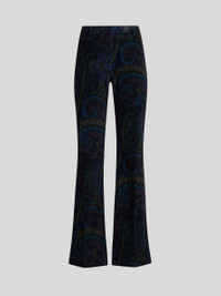 Trousers with snug fit at the sides and flared hem. This model is made from stretch cotton velvet with an all-over Paisley print. • Flared fit • Regular-rise waist • Rear welt pockets • Concealed hook and zip closure • Made in Italy • The model is 5' 9½" (177 cm) tall and wears a size 40 PRODUCT DETAILS • 98% cotton, 2% elastane