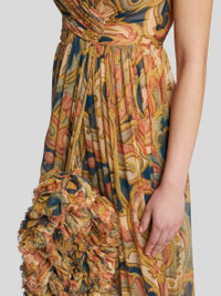 PRINTED SILK DRESS WITH RUCHING