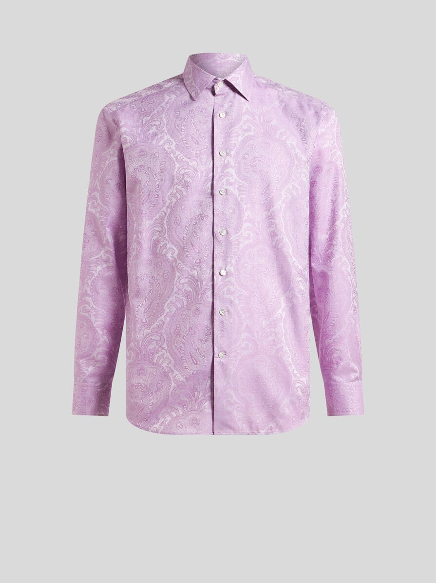 Pure cotton shirt with jacquard detailing all over. • Roma regular fit • Straight-point collar • Double-buttoned working cuffs • Made in Italy • The model is 6' 1½" (187 cm) tall and wears a size 39 PRODUCT DETAILS • 100% cotton