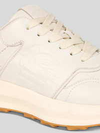 Lace-up running sneakers in leather, featuring the Etro monogram and Pegaso symbol embossed on the side and Etro lettering on the tongue. • Lace fastening • Made in Italy PRODUCT DETAILS • Upper: 100% cowhide • Lining: 100% cowhide • Laces: 100% cotton • Sole: 100% elastodiene