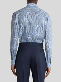 Pure cotton satin shirt. This piece stands out for its all-over Paisley motif enhanced by floral details. • Regular fit • Pointed collar • Button closure • Double-buttoned working cuffs • Made in Italy • The model is 6' 1" (186 cm) tall and wears a size 39 PRODUCT DETAILS • 100% cotton