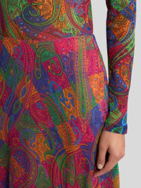 Maxi skirt in lightweight silk crepon embellished with iconic Paisley motif featuring floral elements, superimposed over an archive-inspired pattern with multicoloured diamonds. This high-waisted piece is complete with delicate tonal ruffles. • Regular fit • High waist • Side zip closure • Made in Italy • The model is 5' 9½" (176 cm) tall and wears a size 40 PRODUCT DETAILS • Exterior: 100% silk • Lining: 100% polyester