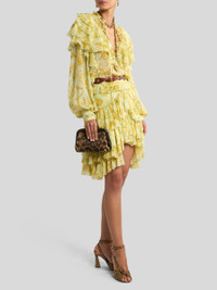 SILK DOTTED SWISS BLOUSE WITH FLOUNCES AND FLORAL MOTIF