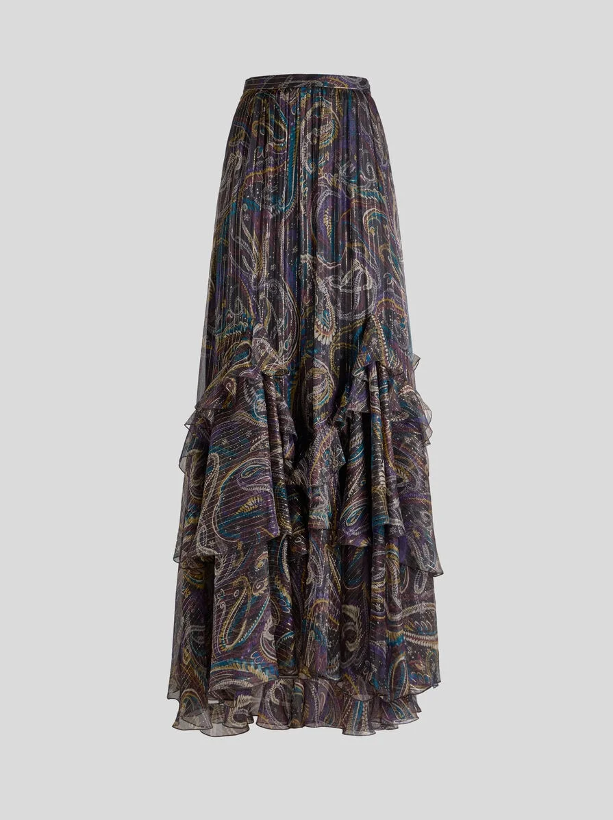 SILK MAXI SKIRT WITH PAISLEY FOLIAGE MOTIF