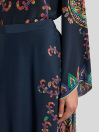 Slightly flared maxi skirt in pure silk crepe de chine with delicate pleats. This piece features a placed print down the sides with Paisleys and floral-inspired elements, and is finished with a medallion and stripe motif at the bottom. • Regular fit • High waist • Rear zip closure • Made in Italy • The model is 5' 9½" (176 cm) tall and wears a size 40 PRODUCT DETAILS • 100% silk