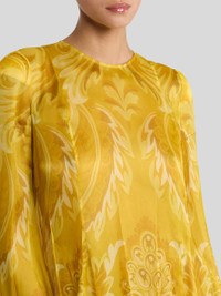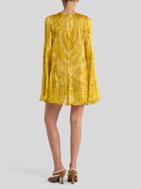 Mini dress in washed silk organza with all-over print featuring maxi flowers and small bees. The pleated skirt and wide long sleeves lend this model volume and movement. The item was presented at the Autumn-Winter 25 Runway Show. • Regular fit • Crewneck • Long sleeves • Rear zip closure • Made in Italy • The model is 5' 9½" (176 cm) tall and wears a size 40 PRODUCT DETAILS • 100% silk • Lining: 100% polyester