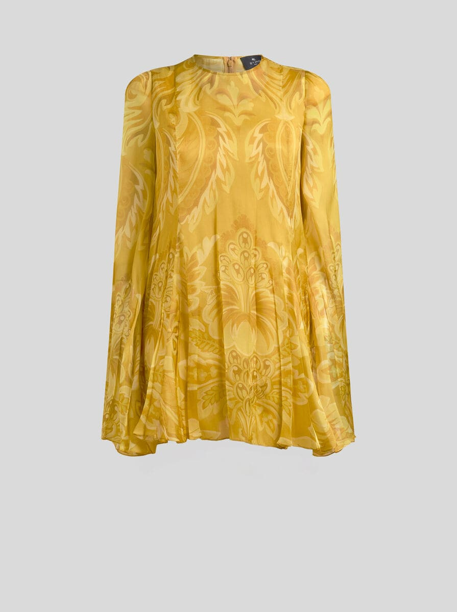 SILK MINI DRESS WITH FLOWER AND BEE MOTIF