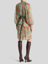 SILK PEKIN CREPON MINI DRESS WITH PAISLEY MOTIF