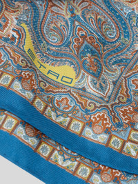 Pure silk twill pocket square with distinctive abstract motif featuring Paisleys and floral-inspired elements, and a striking ray pattern in the centre. This accessory is complete with plain-coloured edges and the iconic ETRO logo. • Size: 16.9 x 16.9 inches (43 x 43 cm) • Made in Italy PRODUCT DETAILS • 100% silk